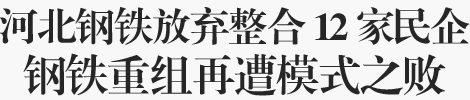 此外,也有声音指出,主要是河北钢铁集团自从去年以来陷入亏损境地,公司不得不把主要精力放到自身结构调整和转型增效上,加上最近集团刚刚更换“掌门人”,于勇上任后势必会对集团战略和经营进行调整,所以放弃整合民营钢企可以理解。