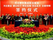 2010年11月11日,河北钢铁集团与省内河北敬业、唐山松汀、邢台龙海、河北永洋、吉泰特钢5家民营钢铁企业签署了联合重组协议,当年底又与九江线材等7家民营钢铁企业签署了协议。当时约定,河北钢铁与12家民营钢企要进行“渐进式股权融合”。